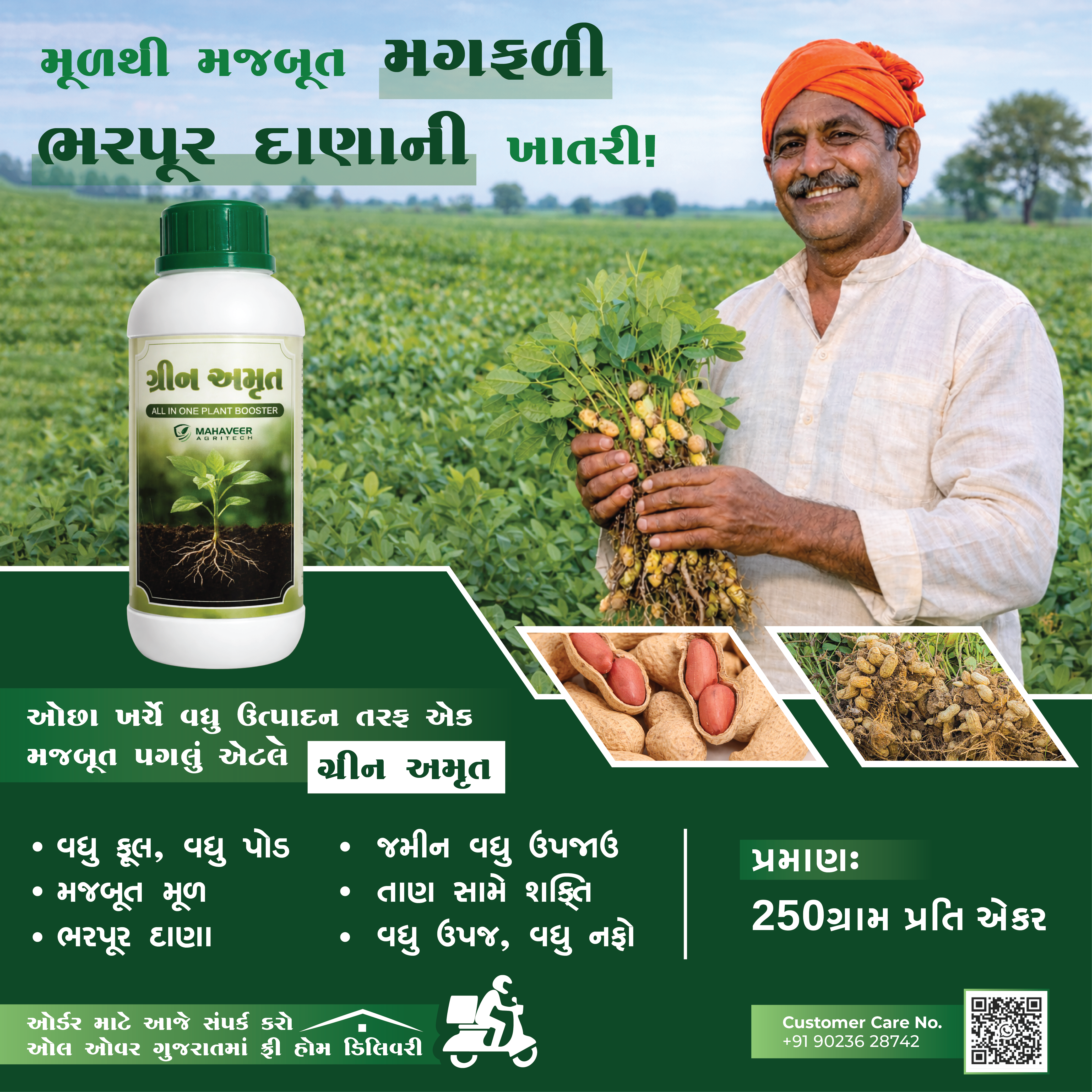Green Amrut is a powerful plant growth booster designed to enhance root development, strengthen plant structure, and improve nutrient absorption. It helps crops grow healthier and supports higher yields across various agricultural crops.